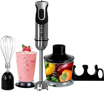 - POTENTE y ROBUSTA Batidora de Mano 800W Motor DC / Cuerpo de Acero Inoxidable SUPER ELEGANTE / Mango de Goma Ergonómico / Resistente y Fuerte Cuchilla de Acero Inoxidable