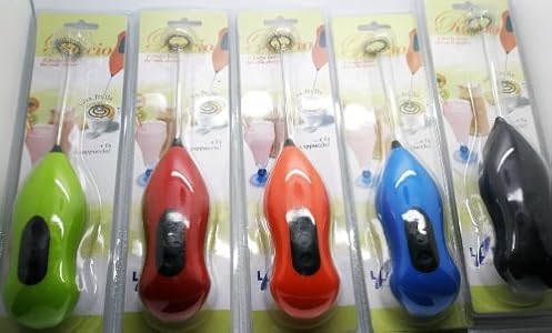 Mini Batidora a pilas para hacer espuma en leche, ideal para capuccinos y batidos Funcionamiento práctico a pilas, con 2 AA de 1,5V (no incluidas) Fabricado en acero inoxidable y ABS Color: ver fotografías, pero consultar disponibilidad. En caso de no consultar se enviará un color al azar. Disponible en color azul, naranja y roja