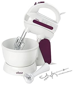- 300 W / 220-240V- 5 niveles de velocidad + función turbo.- 2 varillas batidoras: 21 x 4 cm.- 2 varillas amasadoras- Botón para desmontar las varillas.- Pie mezclador de plástico.- Bol giratorio.Otras características: Altura: 365 mmAltura de la caja: 440 mmAncho: 87 mmAncho de la caja: 340 mmColor del producto: Púrpura, Color blancoFrecuencia de entrada: 50 HzLongitud de cable: 1.2 mMateriales: De plásticoNúmero de velocidades: 5Peso: 2.48 kgPeso del paquete: 2.57 kgPotencia: 300 WProfundidad: 360 mmProfundidad de la caja: 490 mmRecargable: NTurbo: SiVarillas batidoras: SiVoltaje de entrada: 220 - 240 V