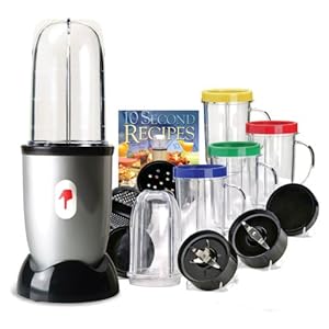 Batir, licuar, triturar... ¡Con la fabulosa y práctica licuadora One Touch Bullet todo es posible! Una eficaz y versátil batidora-licuadora con la que preparar salsas, batidos, zumos, etc. de forma fácil y rápida. One Touch Bullet posee un diseño moderno y elegante que quedará perfecto en tu cocina. Además, es muy sencilla de usar: simplemente hay que presionar en la parte superior. Incluye instrucciones, recetas y varios recipientes aptos para el microondas fáciles de limpiar. Potencia: 250 W. Tensión: 220 V CA. Frecuencia: 50 Hz. Componentes de la licuadora One Touch Bullet: Base con potente motor (altura 16,5 cm x diámetro 11 cm aprox.) Soporte con cuchilla de acero inoxidable en forma de cruz (altura 4 cm x diámetro 8,5 cm aprox.) Soporte con cuchilla de acero inoxidable plana (altura 4 cm x diámetro 8,5 cm aprox.) Recipiente grande (altura 15 cm x diámetro 8,5 cm aprox.) Recipiente pequeño (altura 10 cm x diámetro 8,5 cm aprox.) Jarra grande de 1150 ml con tapa y asa (17 x 21 x 12,5 cm aprox.) Empujador de alimentos y extractor de jugo para la jarra de licuado 4 vasos con asas para beber (8,5 x 13,5 x 11 cm aprox.) 4 anillas circulares de colores intercambiables para los bordes de los vasos 1 tapa con orificios grandes para espolvorear ingredientes de mayor tamaño 1 tapa con orificios pequeños para espolvorear ingredientes de menor tamaño 2 tapas para cerrar herméticamente y conservar el contenido Las 4 tapas sirven para los 4 vasos y los 2 recipientes indistintamente. www.onetouchbullet.com