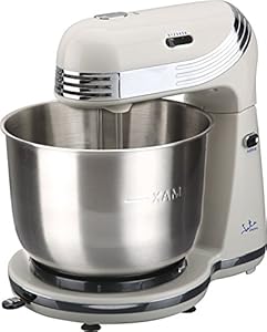 Bol de acero inoxidable, gran capacidad. 6 velocidades. Base giratoria para mezclar y amasar. Deslizador para ajustar la posición del bowl. 2 espirales para amasar. 2 varillas para mezclar. Fácil limpieza. Ventosas de fijación. Voltaje 230 V. Potencia 250 W.