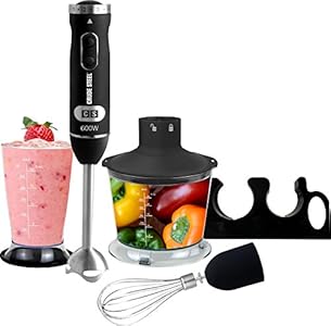 - POTENTE Batidora de Mano 600W Motor DC / Bajo Nivel de Ruido / 2 Pulsadores de Velocidad con Función TURBO / Regulador de Velocidad de Acero Inoxidable