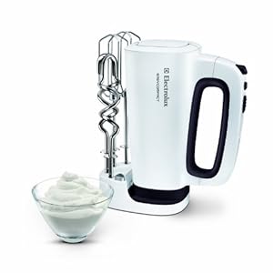 Electrolux EasyCompact EHM4400 - Batidora de repostería, Batidora de repostería con arranque progresivo anti salpicaduras y 5 velocidades. Incluye dos ganchos amasadores y dos varillas batidoras todas aptas para el lavavajillas, que además se guardan en la misma base de la batidora, de forma que no acaban perdidas por los cajones de su cocina.