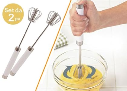 Better Beater es una práctica batidora de mano con la que no tendrá que hacer más esfuerzos al batir. Es manual pero el esfuerzo de uso es mínimo: simplemente presione hacia abajo y la batidora dará varias vueltas que le ahorran el trabajo de tener que darlas usted y acabar con el brazo cansado. Ideal para batior claras de huevo, salsas, aderezos, cremas, etc. El pack incluye dos batidoras: 5,5 cms. diámetro y 7,5 cms. de diámetro. Medidas de las batidoras: 30 cms. de largo. Medidas de la caja: 30 cms. de largo x 11,5 cms. de ancho x 6,5 cms. de profundidad