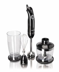 Modelo profesional de gran potencia: 800W. Cable de 45cm de estilo telefónico de fácil utilización. Pie en acero inox. 2 filos de alto rendimiento. Mejora la vida útil del motor.Regulador de velocidad variable. Accesorios: Bol con tapa 0,8 L. Mini chopper 0,5 L. Varilla levanta claras.