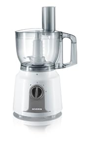 Severin KM 3908 - Procesador de alimentos Recipiente procesador de aprox. 1,5 litros Para varias aplicaciones 2 Velocidades, con función adicional de pulsación Recipiente procesador transparente con señales de medidas Elementos de doble seguridad para el recipiente y el cierre de la tapa Cuchilla de Acero Inox. Discos accesorios de acero inox. Pies de goma antideslizante Con accesorio para empujar los alimentos Potencia,